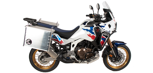 | 適合車種 | ホンダ CRF1100L AfricaTwin ('19-'21) ※マフラーを逃がすため、左右非対称形状。マフラー側に30L、反対側に40Lのケースを搭載することで、車幅が左右対称に。 ※純正ラックとの併用不可 |