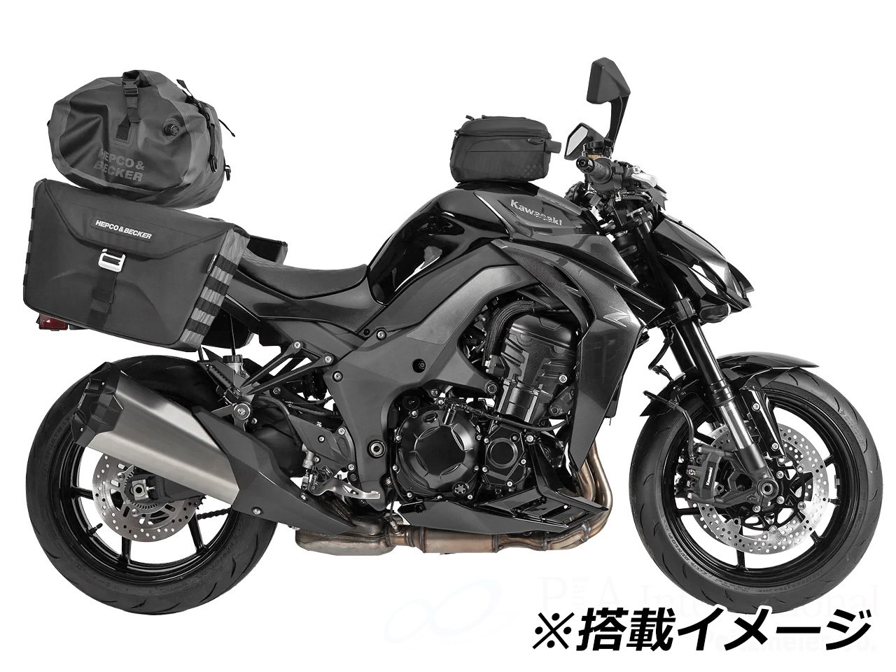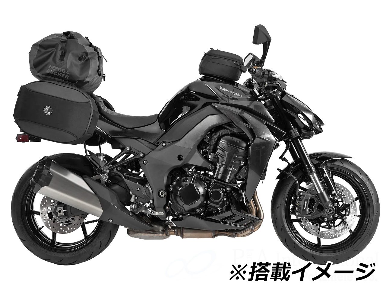 | ヘプコ&ベッカー製のソフトバッグ。ハードケースよりも軽量なため車両の重心変化が最小に抑えられます。確実に車体に固定することができ、バッグの取付、取外しも容易に行えます。荷物の量によって容積も変化させることができます。 | |||