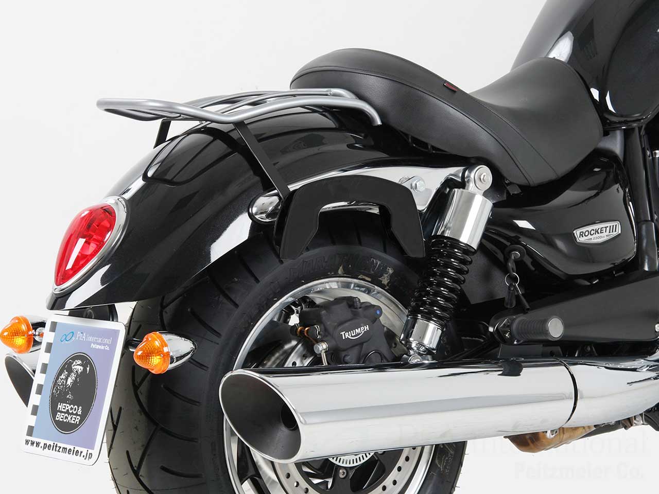 ロケット 3の ツーリング カスタムパーツ ヘプコ&ベッカーのC-Bowタイプ サイドバッグ / サイドケース をワンタッチで 着脱可能なキャリア。 シンプルでスマートな構造ながら、確実にサイドバッグ / サイドケースをホールドします。もちろんキーによるロック機構も備えています。 車種別専用設計品。高耐久パウダー塗装仕上げ。 ※耐加重 : 片側 5kg (ケース、バッグの自重を除く) ※サイドケースは別売です。こちらからお求め下さい。 ※バッグの搭載位置を 50mm 前方または後方、30mm 上方または下方に移設する移設キット(オプション)もあります。 |