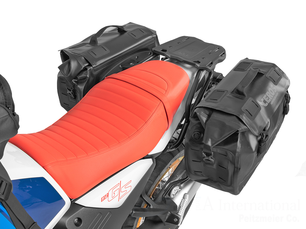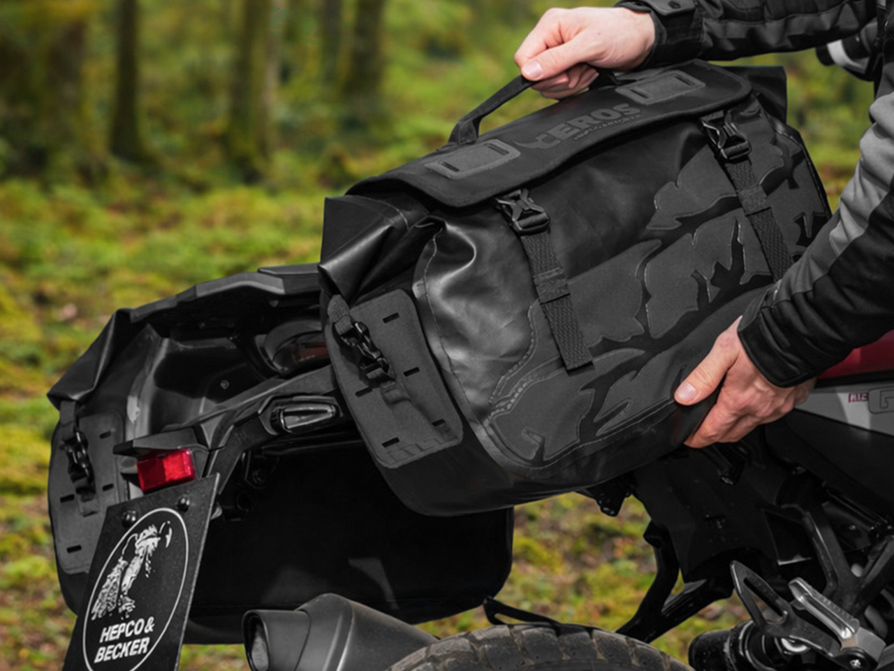 ヘプコのブランドイメージを体現したタフなサイドバッグ「Ceros / セロス」力強い姿と強靭さが特徴のサイはヘプコ&ベッカーのブランドロゴにもなっており、ヘプコのブランドイメージそのものです。 ハードサイドバッグ 「Ceros / セロス」はそのサイをモチーフに生まれたアドベンチャーライディングに最適なサイドバッグです。 オフロード走行で重要となる軽量さと耐久性、高い防水、防泥、防塵性能を兼ね備え、ハードなライディングにも耐える頼もしい相棒となります。 デザインにおいても随所にサイのモチーフが使用されており、バッグ表面の迷彩パターンは頑丈なサイの皮膚を、CEROSのロゴにはサイの角を、そして「Rhino"ceros"」という名前など、非常にユニークで遊び心と冒険心を掻き立てるサイドバッグとなっております。 取り付けステーに評判の高いC-Bowを採用することにより、非常に簡単に取り付け、取り外しが可能。 またバッグはしっかりと固定され、険しい悪路でも安定した走行が可能です。 ・耐久性があり、熱溶着された多層構造の防水シート生地。 ・取り出し口は防水性、防塵性の高いロールクロージャを採用。 ・サイドコンプレッションバルブ装備で、荷物の量に併せて素早くコンパクトに圧縮することができます。 ・バッグのトップとサイドには米軍仕様のMOLLEシステムを採用。使用場面に応じた拡張性を確保しています。 ・容量:20L(片側) ケース 重量:1.5Kg (片側) ※ 車種別専用ステー 「C-Bow」 が必要です。車種別にラインナップがございます。 ▼セロスの搭載には車種別専用ホルダー C-Bow / シーボウが必要です。 |