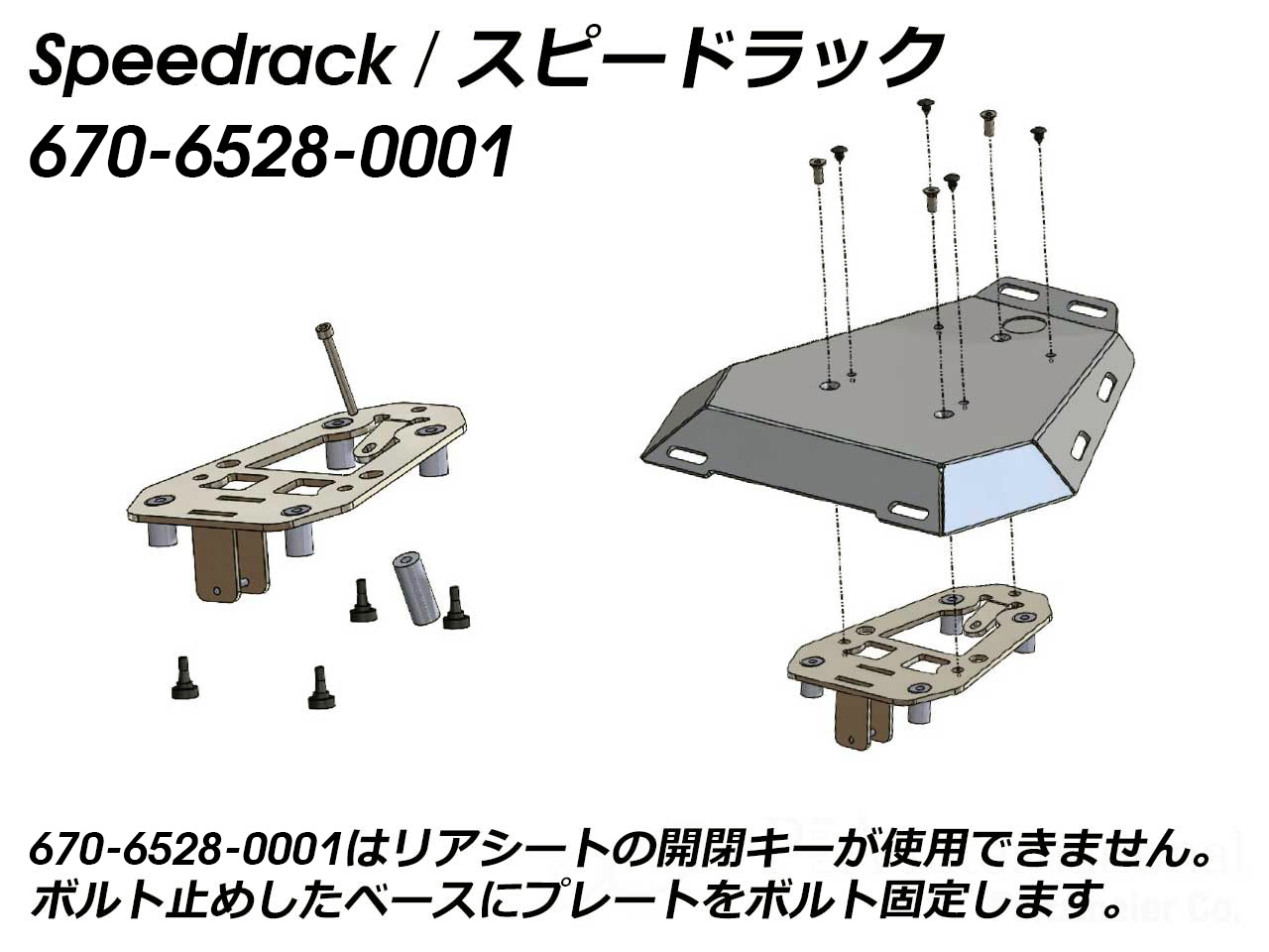 | 適合車種 | BMW S1000RR ('23-) ※取付けがボルト止めとなります。取扱説明書をご確認ください。 ※トップケース、拡張プレート 「Universal Extension」の取付不可 ※オプションパーツ MultiBASICアダプター 516-200 適合の一部のみ表示しています 全車種表示はこちら |