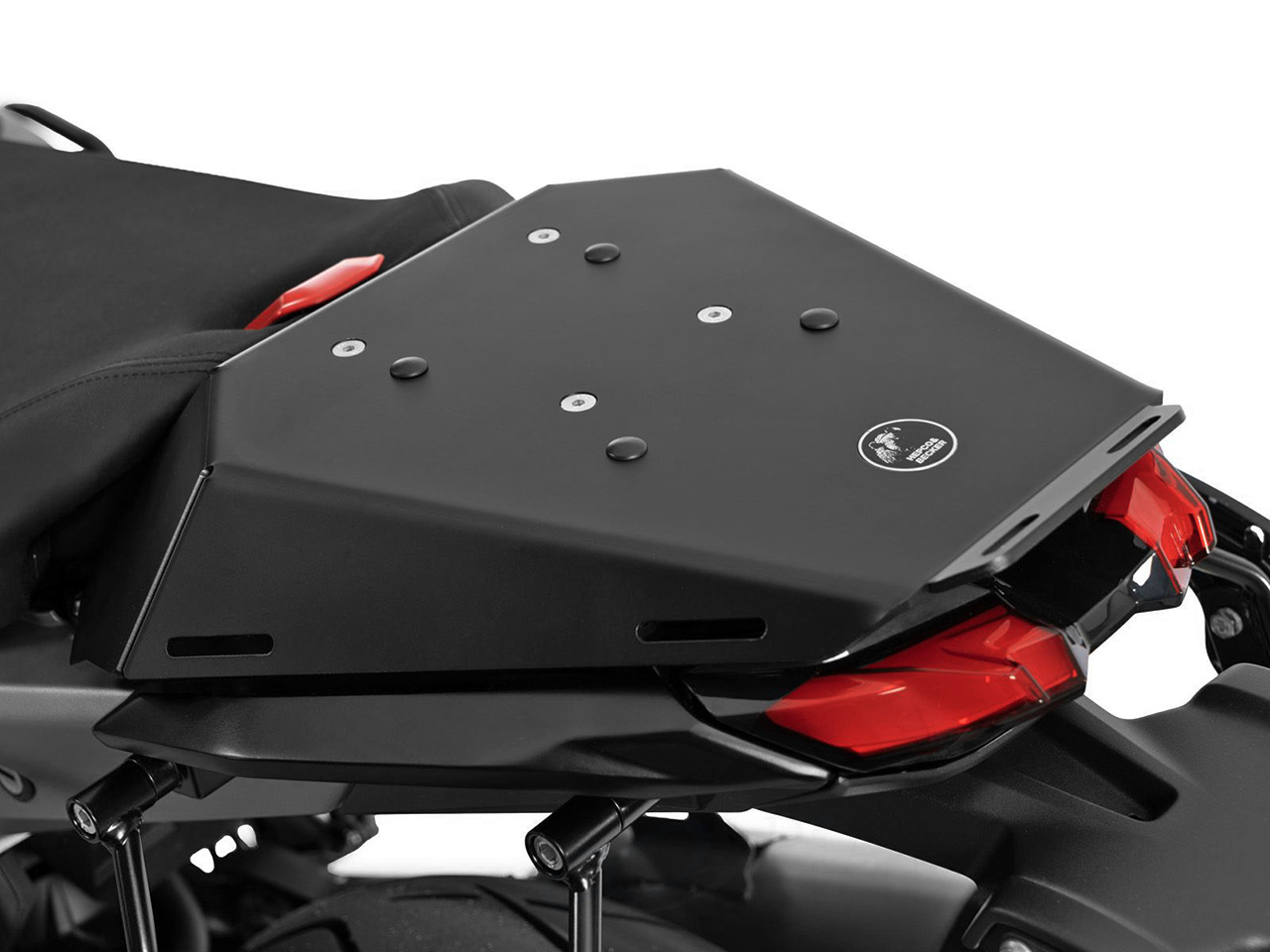 ツーリング カスタムパーツヘプコ&ベッカーのタンデムシート置き換え型リアラック「Speedrack EVO」。 ソロライディングの際にタンデムシートと置き換えることによってリアラックとしてスペースを有効活用。 スーパースポーツ、スポーツバイクに荷物の積載を可能にします。 荷物を固定するベルトなどを留める為のフック受けも多数あり、街乗りからツーリングまで、快適にご利用頂けます。 オプションで下記を装着可能。荷物の積載が容易になります。
